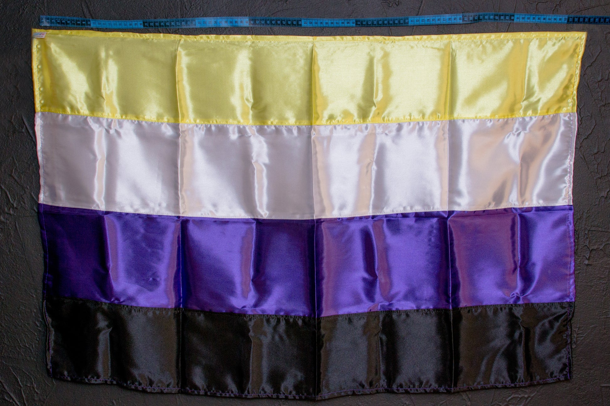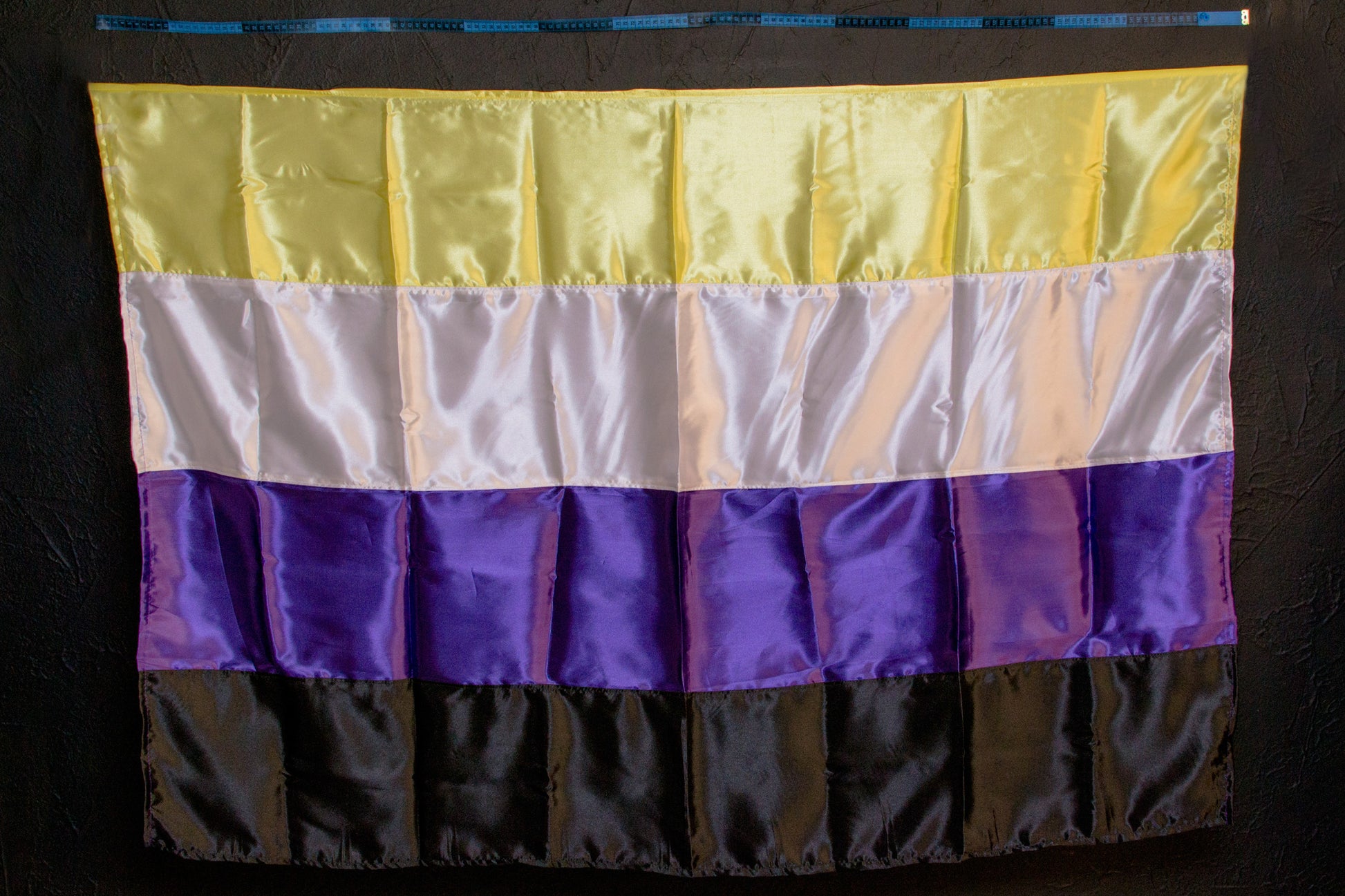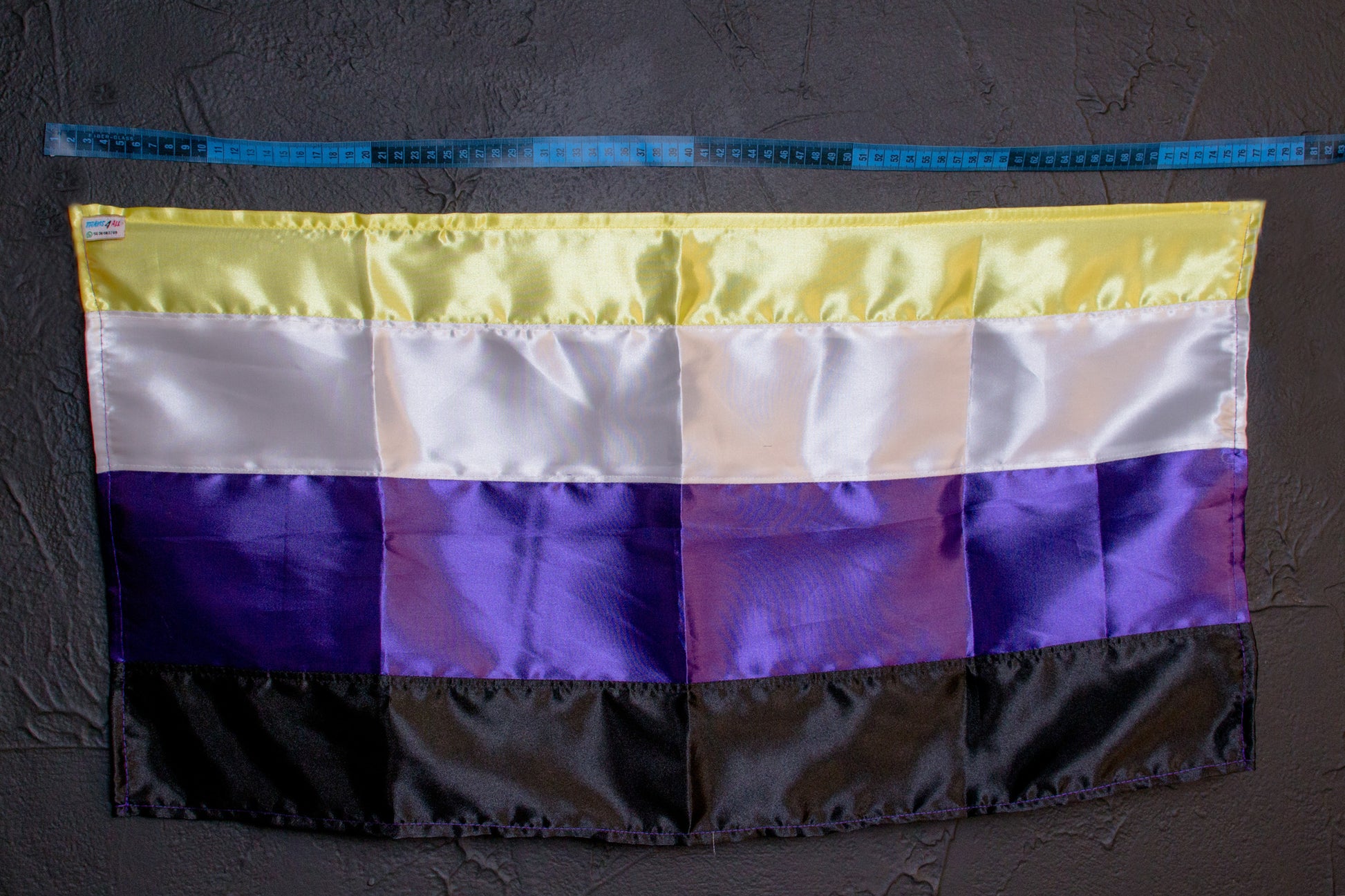 Ondea con orgullo tu identidad con esta hermosa bandera No Binario, hecha a mano por miembros de la comunidad LGBTQ+.