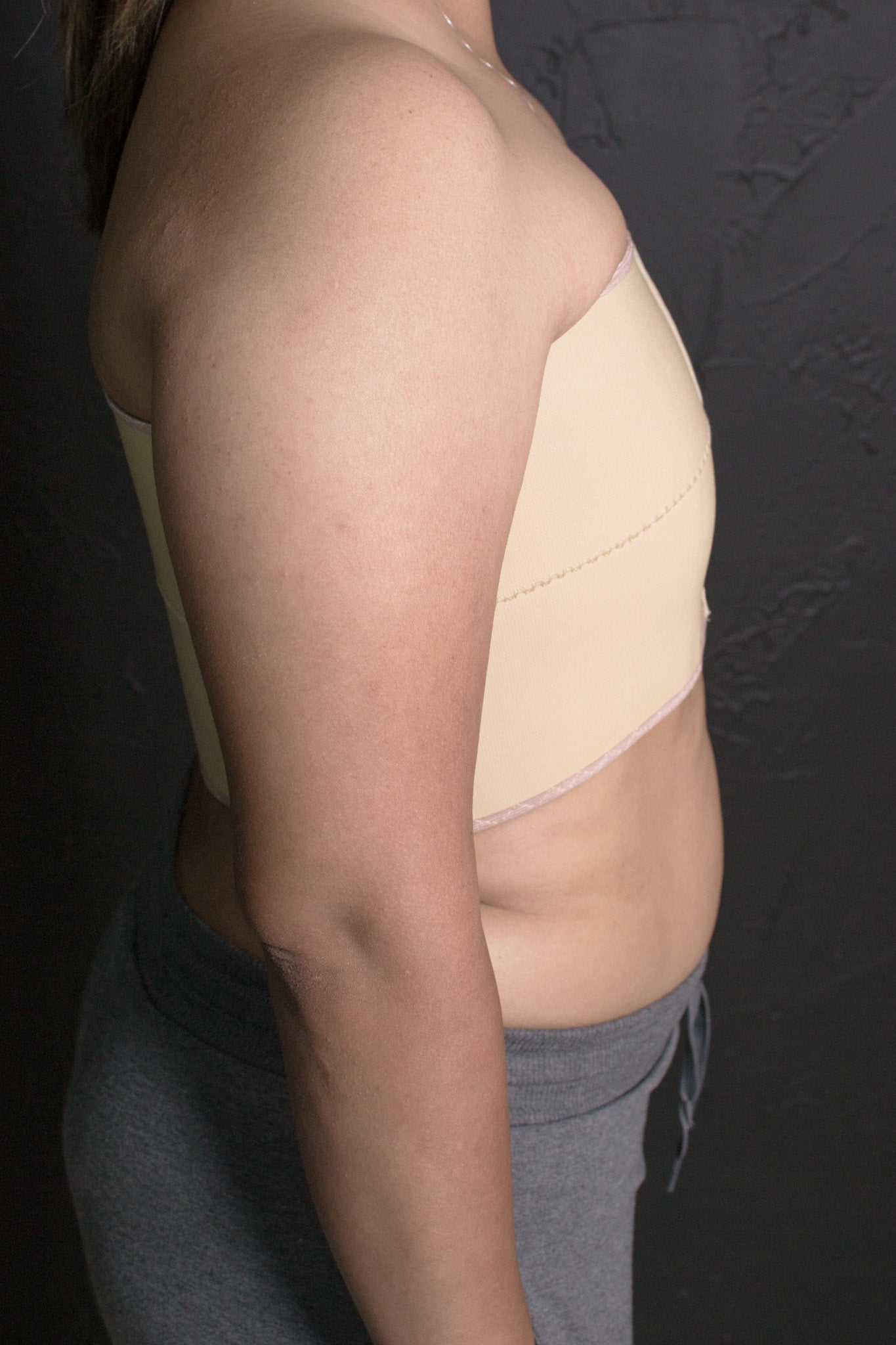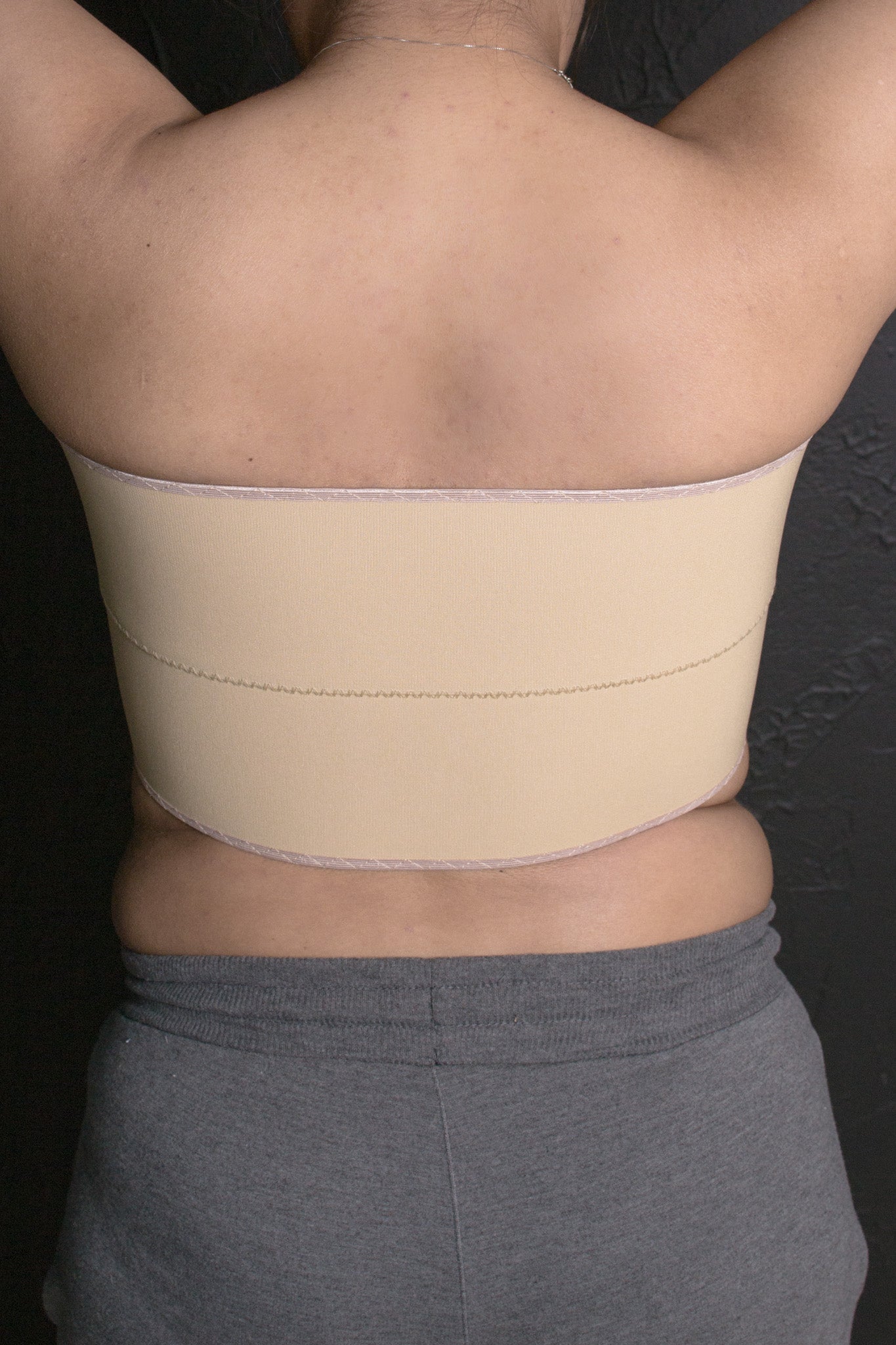Binder fabricado con material elástico reforzado de grado medico especializado que no daña la piel, super discreto y comodo, hipo alergénico y hecho a medida. Tambien puede usarse como faja post mastectomía, recomendada por cirujanos plásticos. Con este binder SI puedes hacer ejercicio, deporte o nadar. Es ideal para una cobertura de pecho de hasta18 a 25cm.