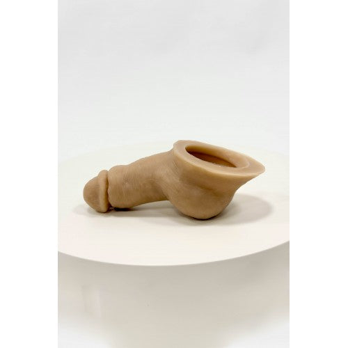 Packer cuya función es dar volumen y orinar de manera fácil y segura. El material es una silicona que imita la piel humana, con una textura realista y llena de detalles en la superficie. Desarrollado exclusivamente para usar con ropa interior. Está inclinado, para que sea más fácil orinar, su canal interno y orificio de salida es muy grande, lo que permite liberar orina con un flujo mucho mayor. Nota: no necesita vertebra ya que no funciona para actividades sexuales.