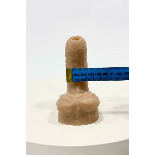Packer cuya función es dar volumen y orinar de manera fácil y segura, ideal para el uso diario, incluso para nadar. El material es una silicona que imita la piel humana, con una textura realista y detalles de cuerpo completo para mayor realismo. Es extremadamente ligero y suave, lo que lo hace muy cómodo, el volumen es súper discreto y realista ya que la abertura que permite orinar no se ve de lado, su canal interno y orificio de salida es muy grande, lo que permite liberar orina con un flujo mucho mayor. Tamaño 8 cm